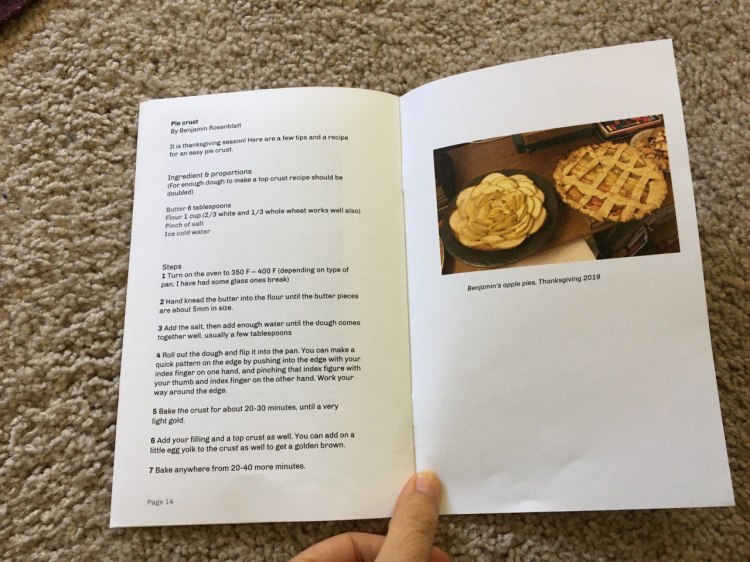 “I sent an invitation for submission to all residents through the building page. Many of them got back to me with amazing submissions, stories, poems and recipes.” Also they had a broad age range from children to older adults.